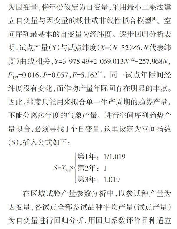 摘要 产量分离是研究气象因子对作物产量影响的重要步骤。应用区域试验数据分离气象产量,具有原始数据准确可靠、样本容量大、不需要人为划分生育期、便于检验等优势,依空间指数直线回归拟合趋势产量操作简便,结果合理。