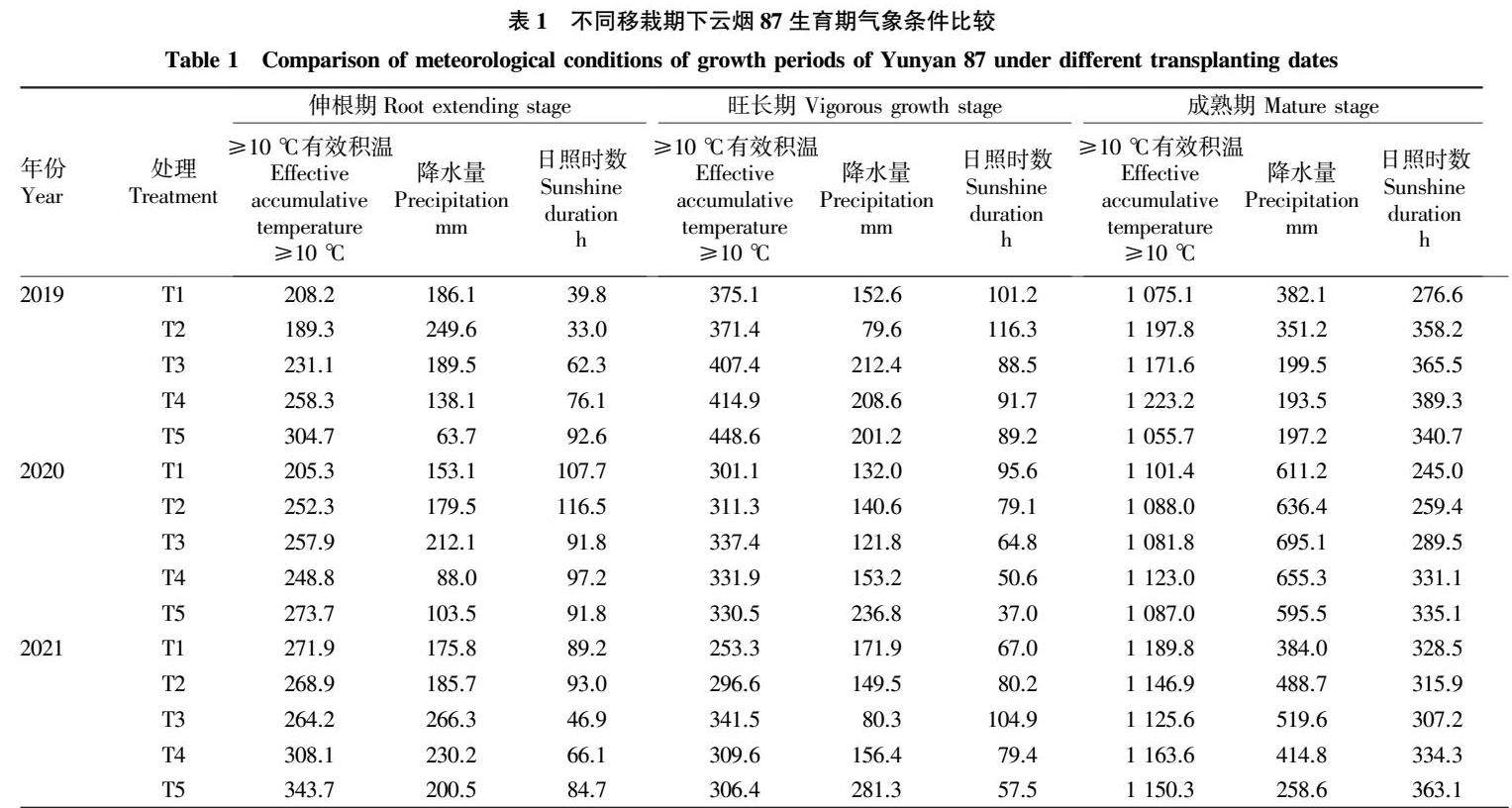 移栽期对湘西中海拔地区云烟87烤烟生长·产量和化学成分的影响