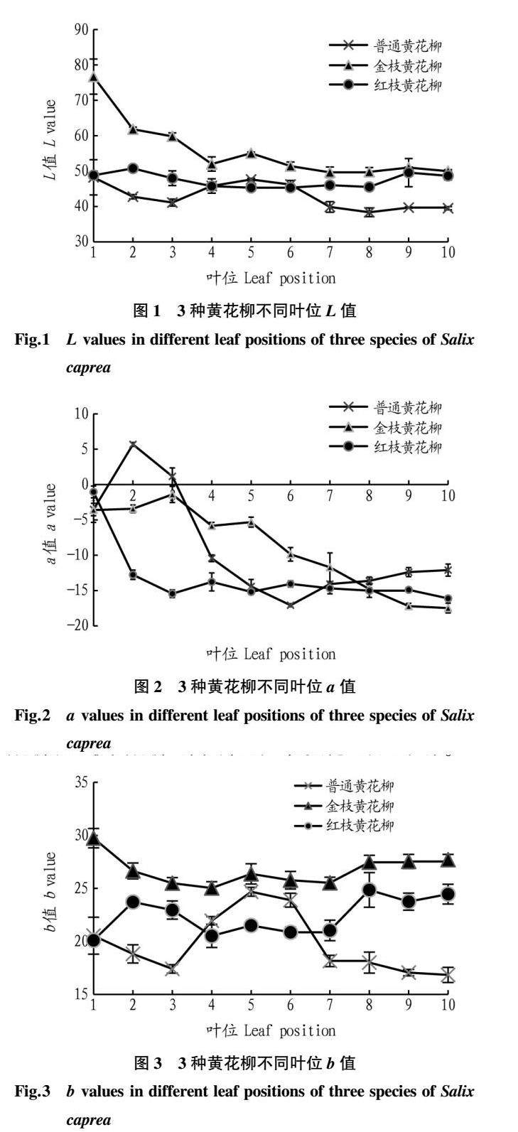 3种黄花柳不同叶位叶色·叶绿素含量及其快速荧光研究
