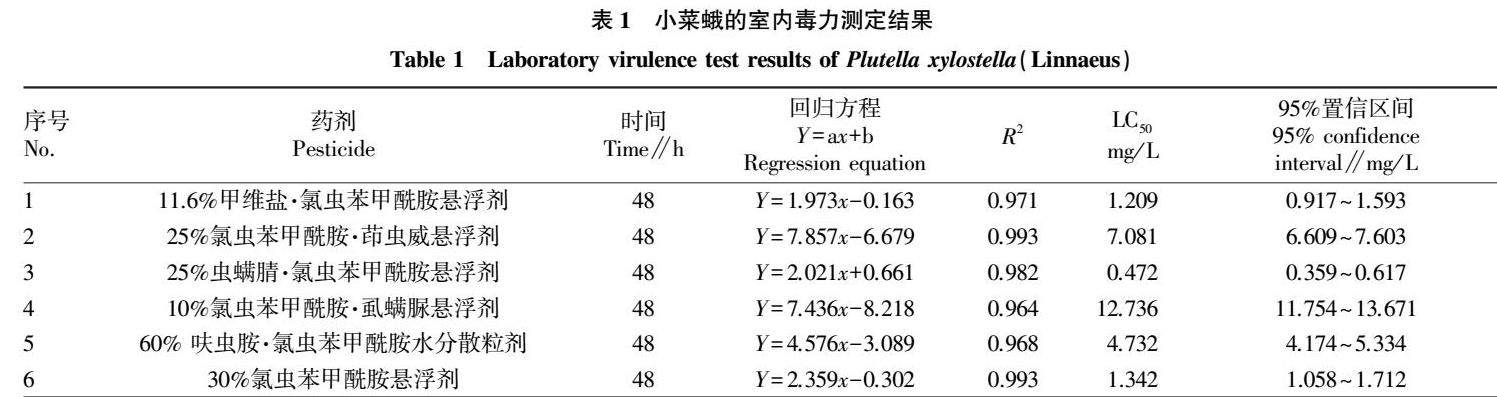 6种杀虫剂对甘蓝小菜蛾的室内毒力及田间防效