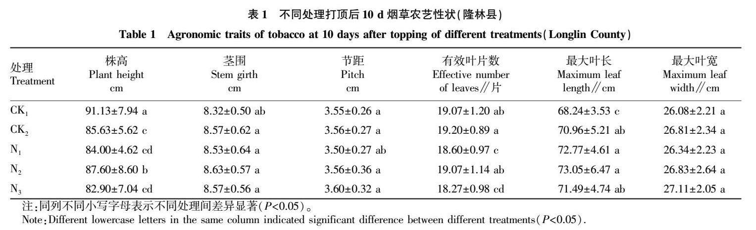 不同用量高碳基肥条施对百色烟草产质量的影响