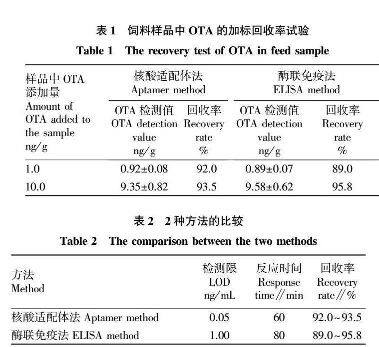 基于核酸适配体检测赭曲霉毒素A方法与酶联免疫法的对比研究