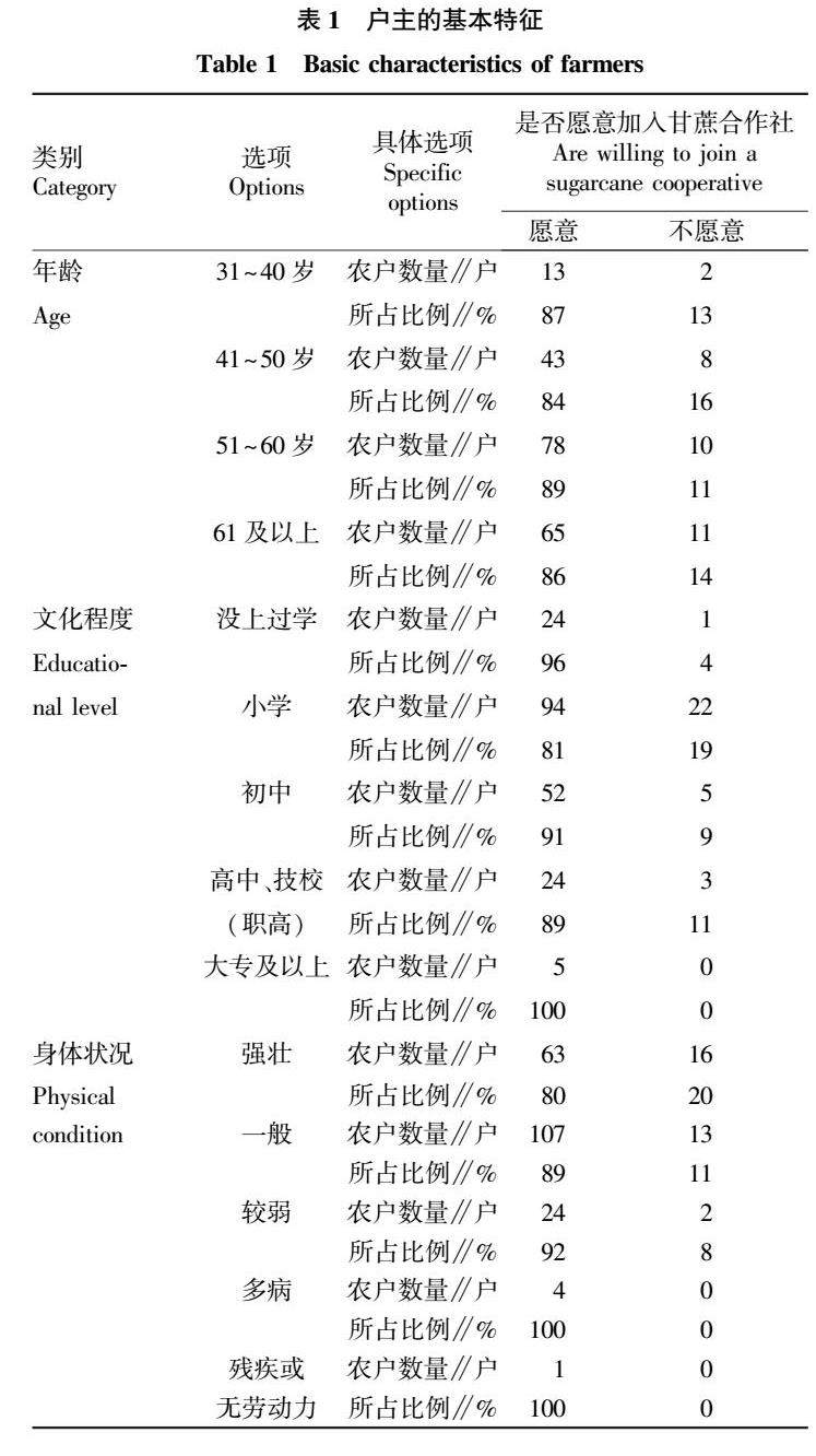 基于描述性统计分析的蔗农加入合作社影响因素研究