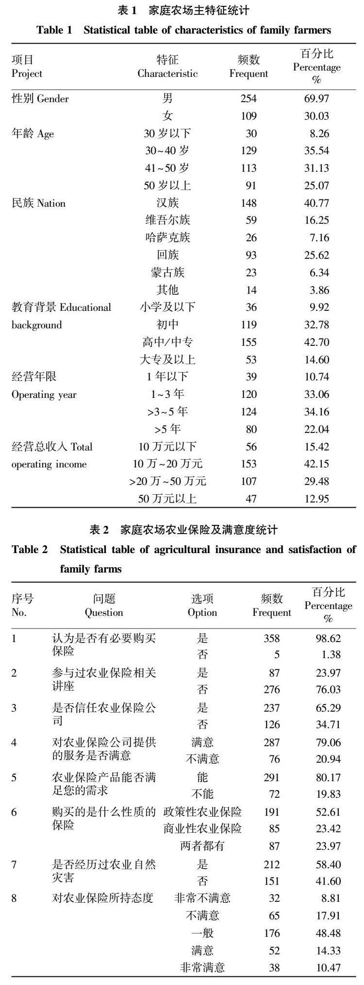 新疆家庭农场对农业保险的满意度及影响因素研究
