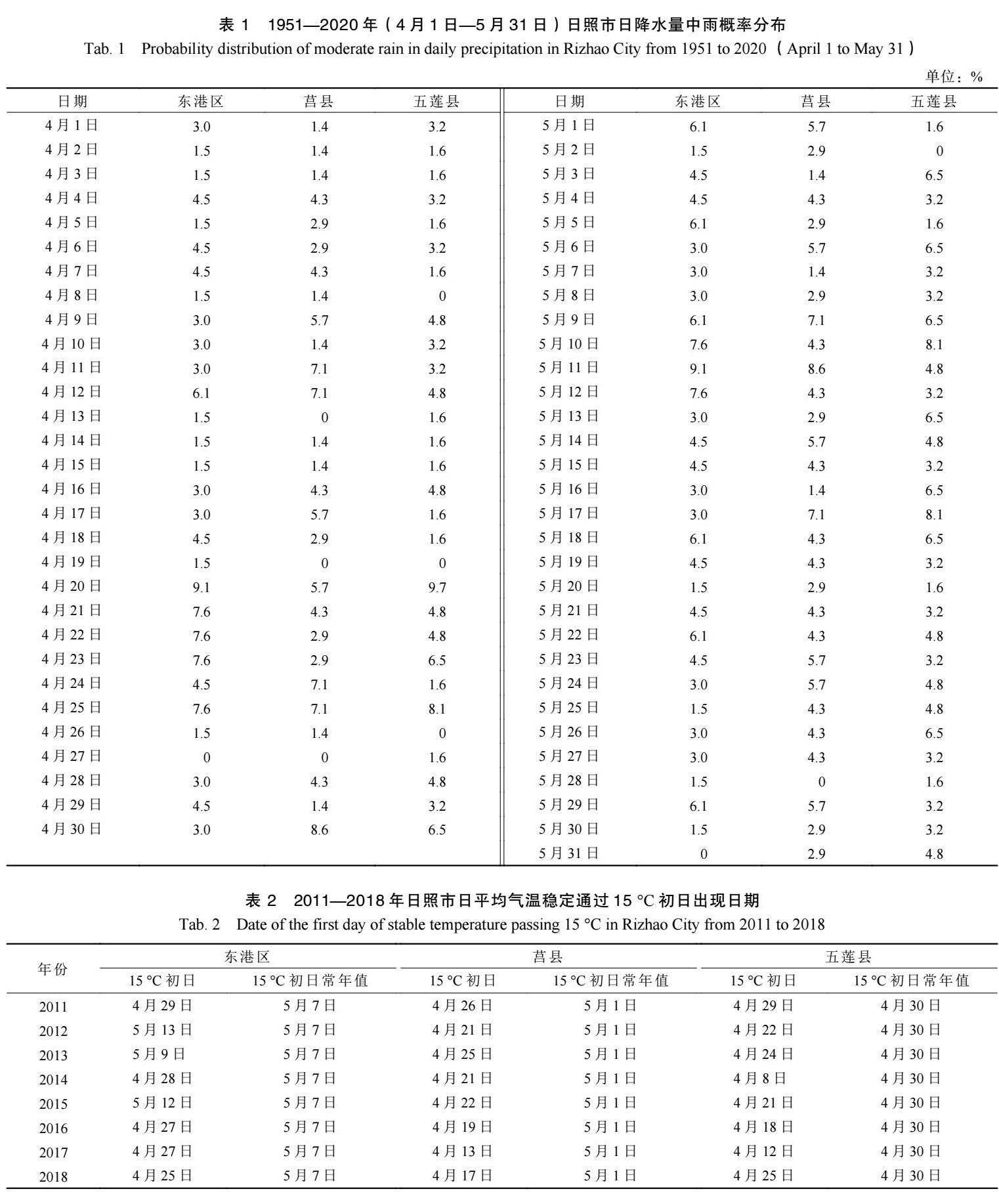 日照市春秋播期间降水概率和春秋播进度分布特征