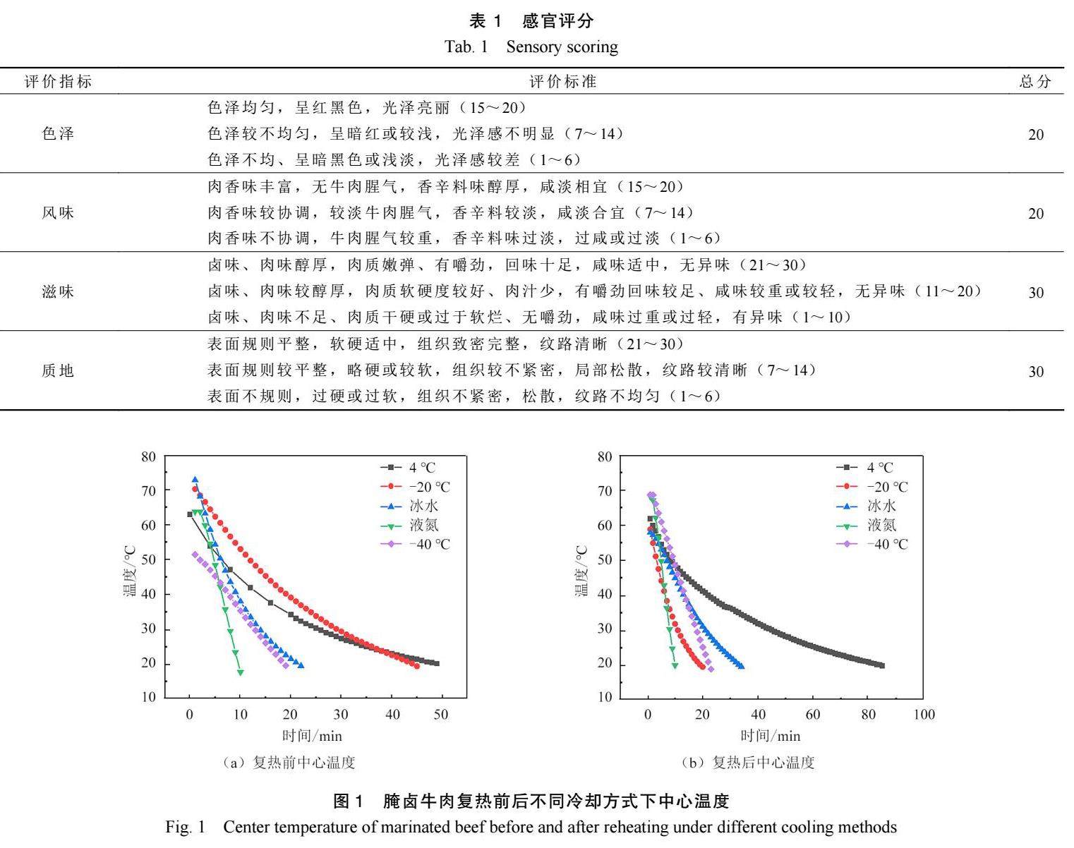 腌卤牛肉快速冷却工艺对比及评价指标相关性分析