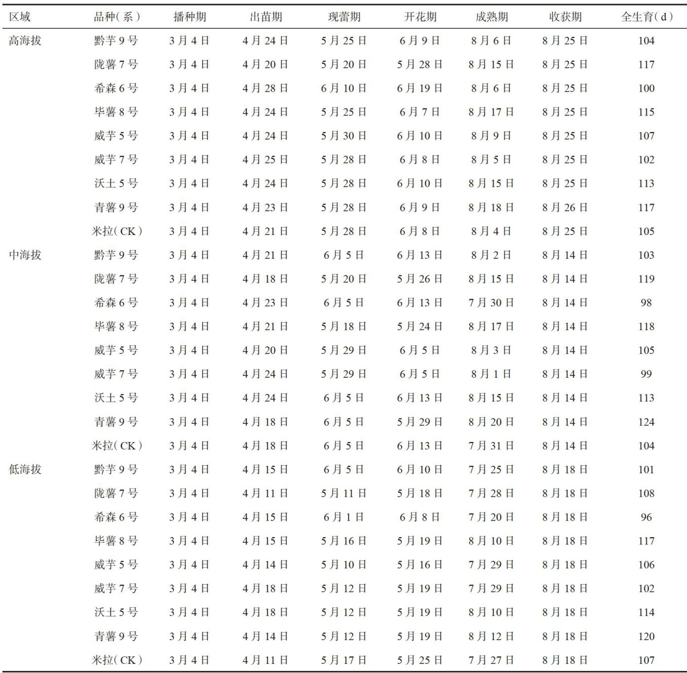 9个马铃薯品种(系)在贵州省赫章县不同海拔高度的种植表现