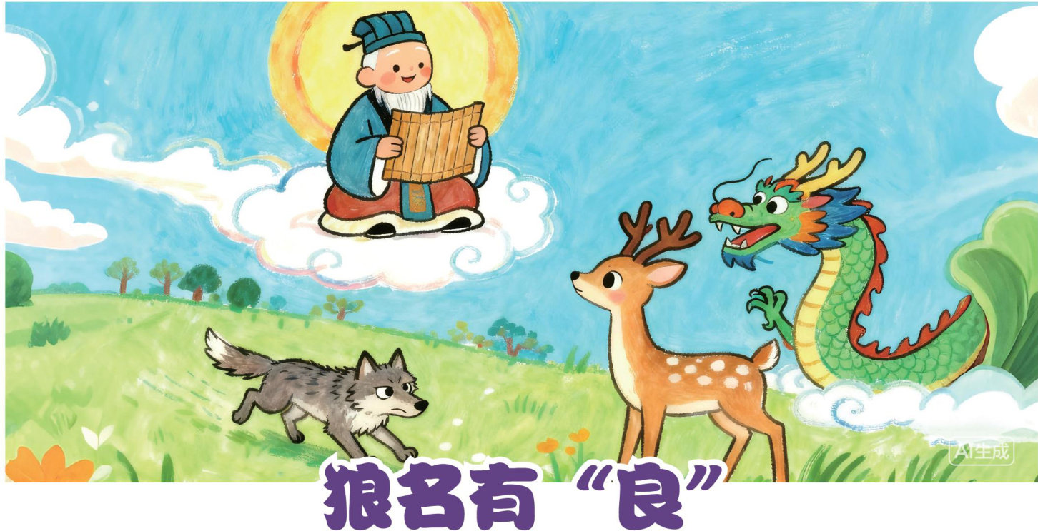 多少年来梅花鹿遭受狼群的欺凌,一直对狼耿耿于怀。狼明明是个坏东西,它的名字上怎么还有个“良”字呢?仓頡是怎么搞的嘛!鹿找到了龙一—因为龙头上的角就是鹿送给它的,请它上天去质问仓頡,把狼的名字改一改。