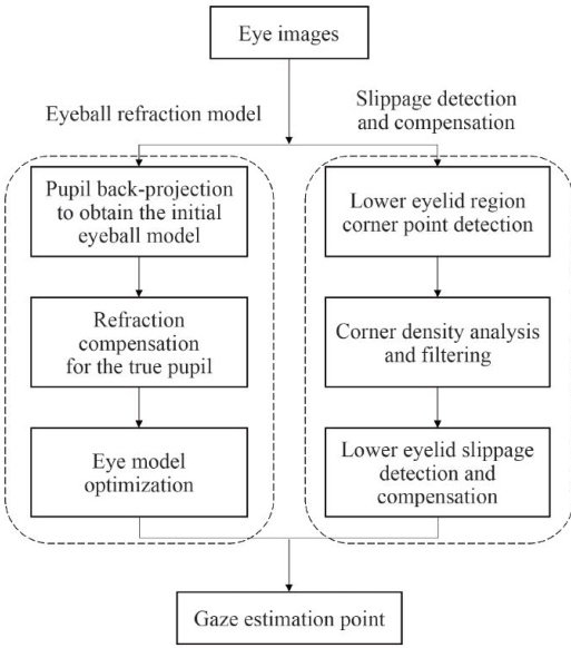 Gaze estimation algorithm based on corneal refraction and slip compensation