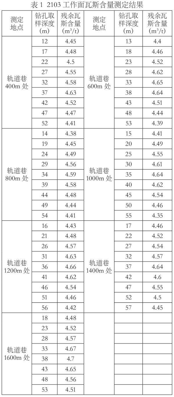 吉宁矿2103工作面残余瓦斯含量与钻孔取样深度影响分析
