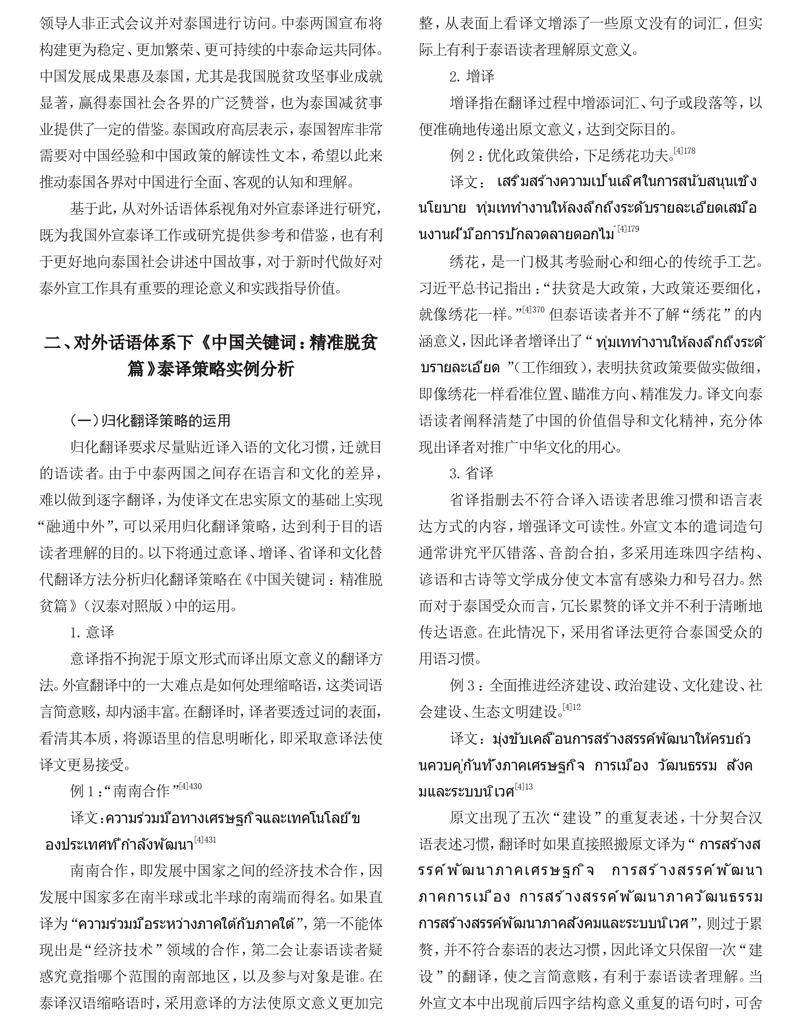 归化异化视角下《中国关键词:精准脱贫篇》泰译策略实例分析
