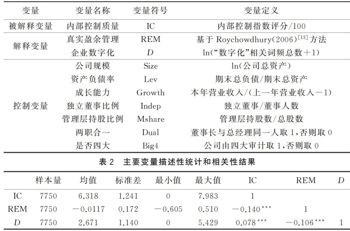 真实盈余管理、企业数字化与内部控制质量