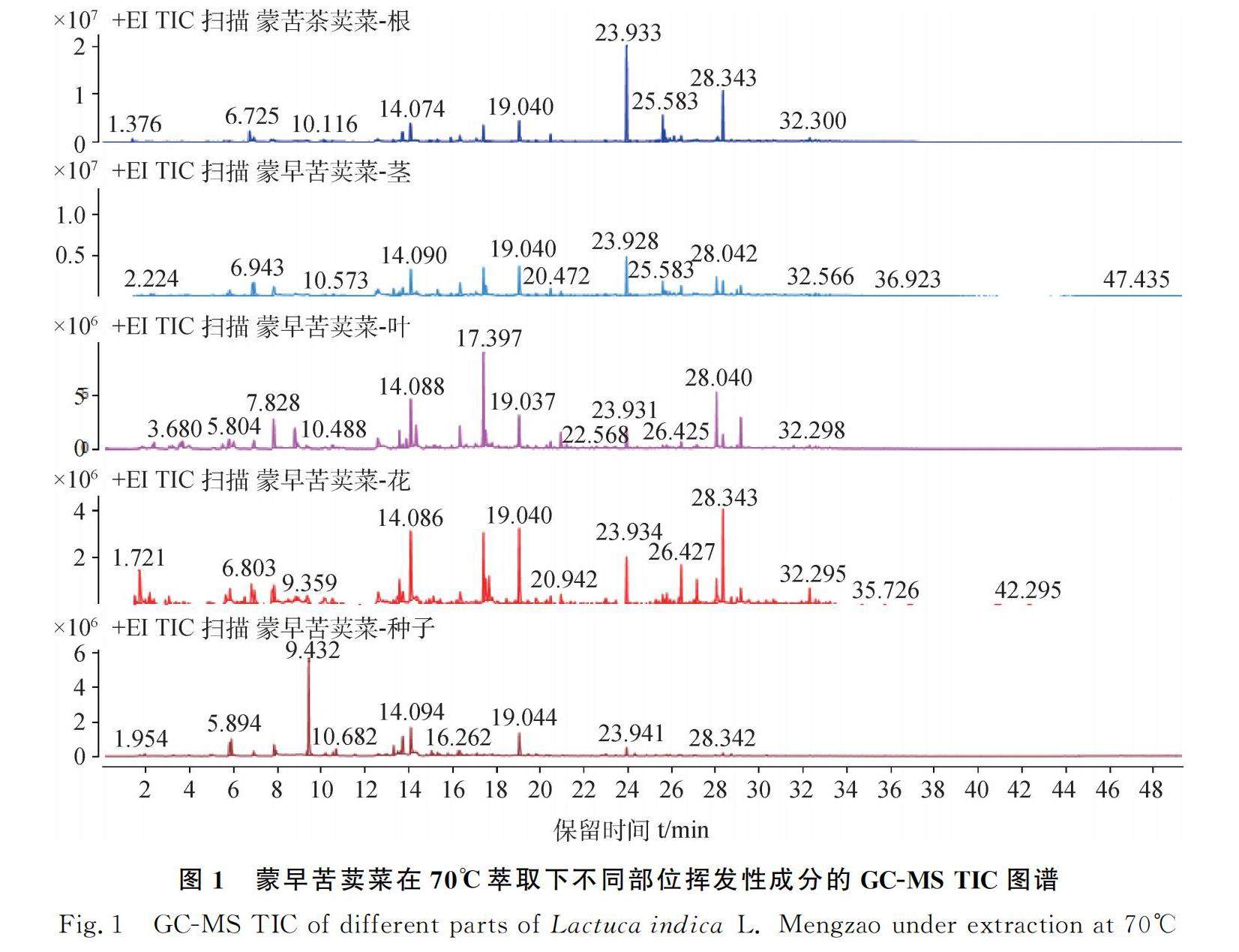 萃取温度对蒙早苦荬菜各部位挥发性成分的影响