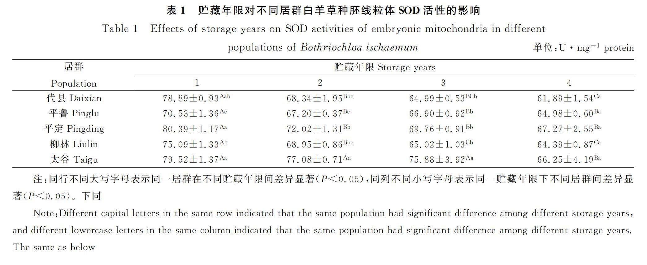 贮藏年限对不同居群白羊草种胚线粒体抗氧化性能的影响