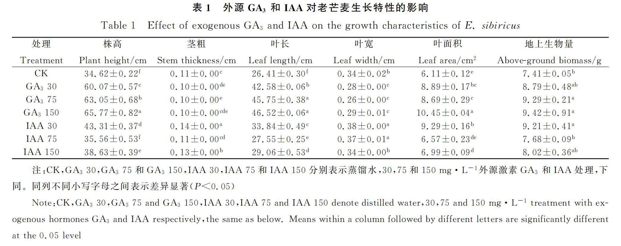 外源赤霉素和吲哚乙酸对老芒麦生长、生理特性及染色体端粒的调控