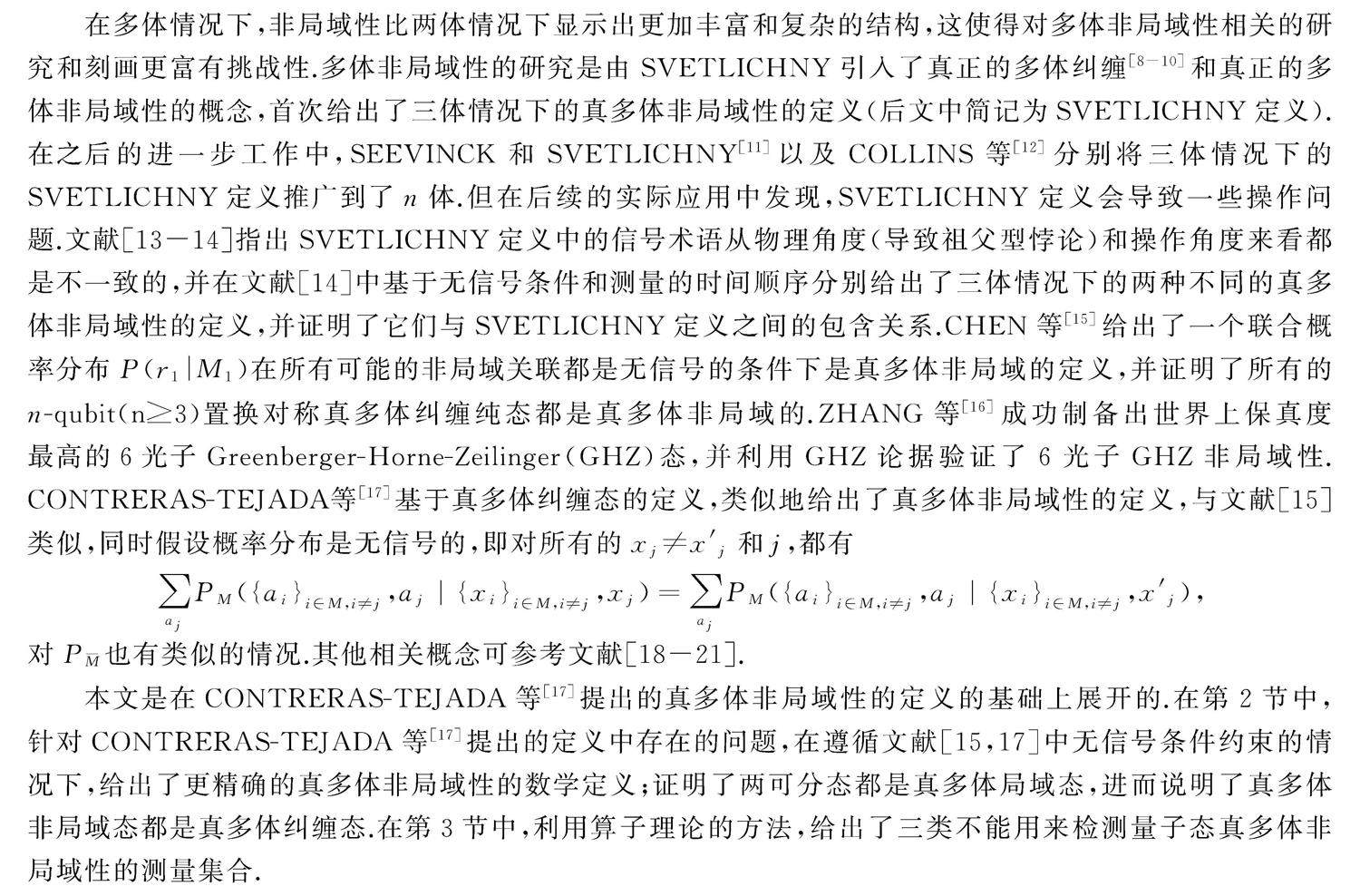 关键词: 真多体非局域性;真多体纠缠;量子态