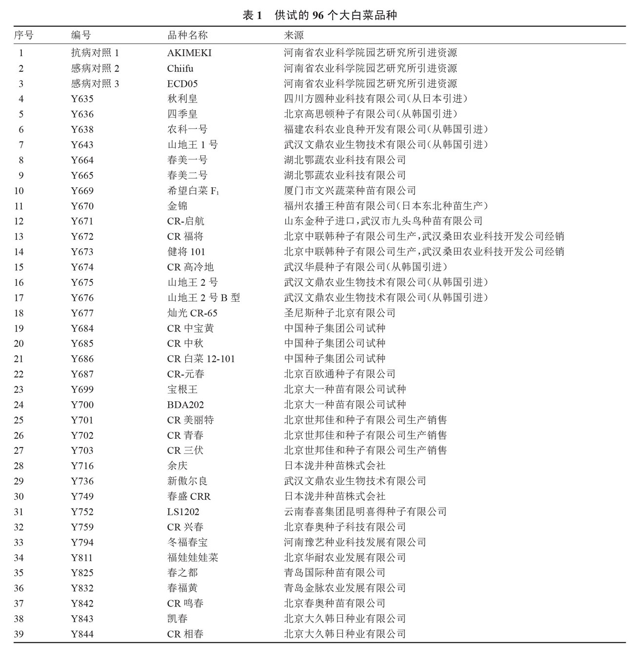 96个大白菜品种根肿病抗性鉴定及位点检测