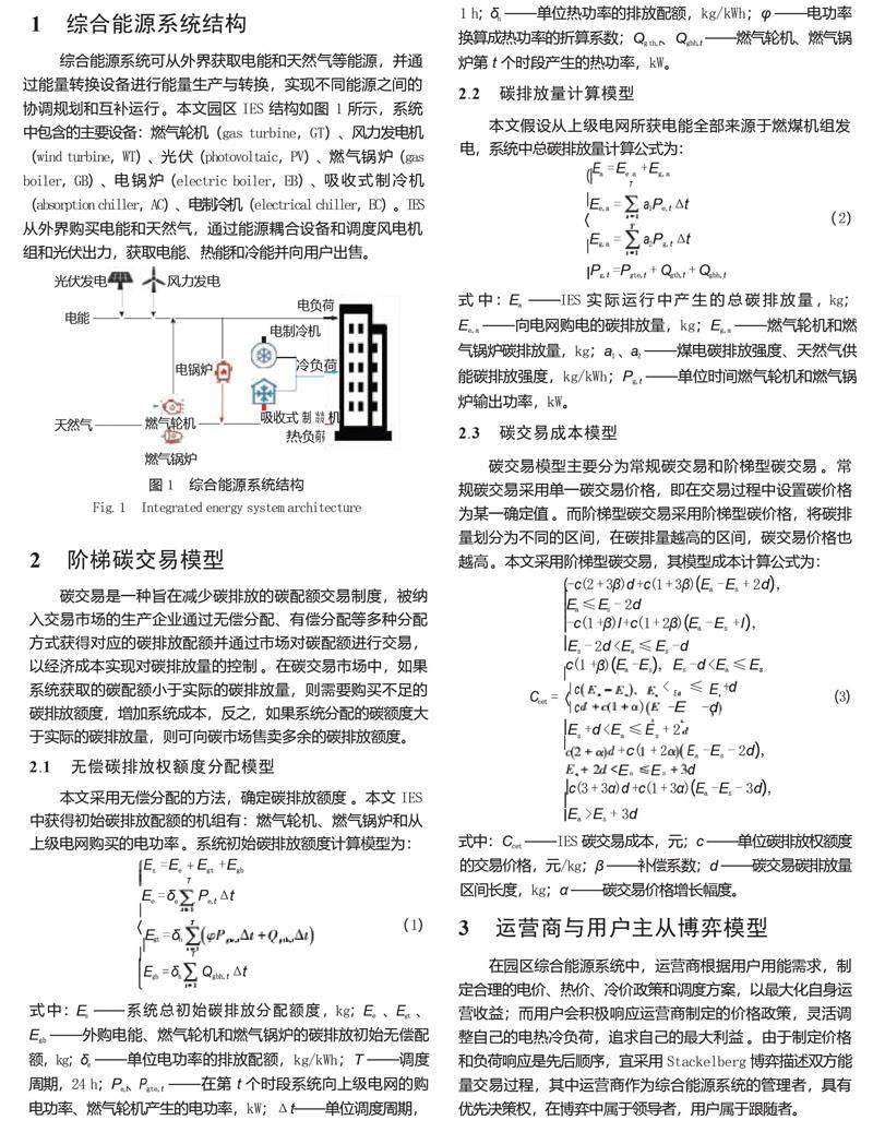 基于主从博弈和混合碳政策的园区综合能源系统低碳经济调度