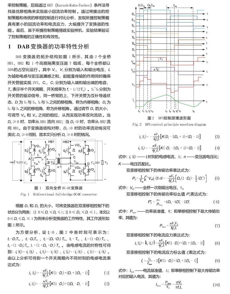 基于ZVS的双向全桥DC-DC变换器最小回流功率双重移相分段控制