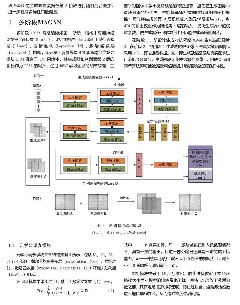 摘 要:针对太阳电池缺陷图像数据少导致深度学习模型过拟合,从而造成小样本缺陷检测困难的问题,该文提出一种融合元学习和双路径注意力的生成对抗网络(MAGAN)作为数据增强策略。所设计的元学习调参模块(MTM)优化生成器中权重参数;所设计的双路径注意力模块(DPAT)在特征提取过程中更关注图像中微小微弱缺陷特征;在改进网络构架的同时提出一种聚类约束损失函数解决训练过程中梯度消失问题。(剩余11248字)