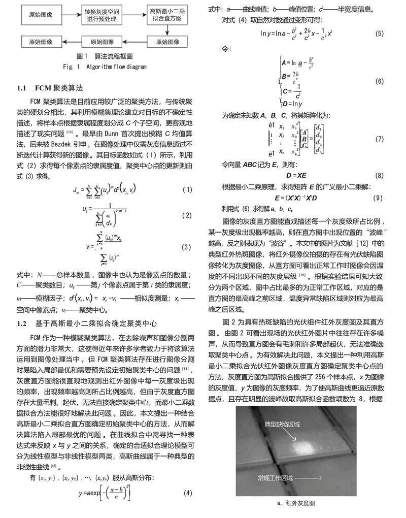 摘 要:针对光伏红外热斑检测问题,提出一种曲线拟合结合图像聚类的热斑红外图像处理方法。首先,将图像灰度变换处理后,采用高斯最小二乘拟合确定聚类中心点;然后,针对传统模糊C均值噪声鲁棒性较差的特点,加入邻域空间影响以及用核距离代替欧式距离的模糊C均值算法对热斑图像进行聚类;最后,根据拟合图进行灰度多阈值分割。(剩余13337字)