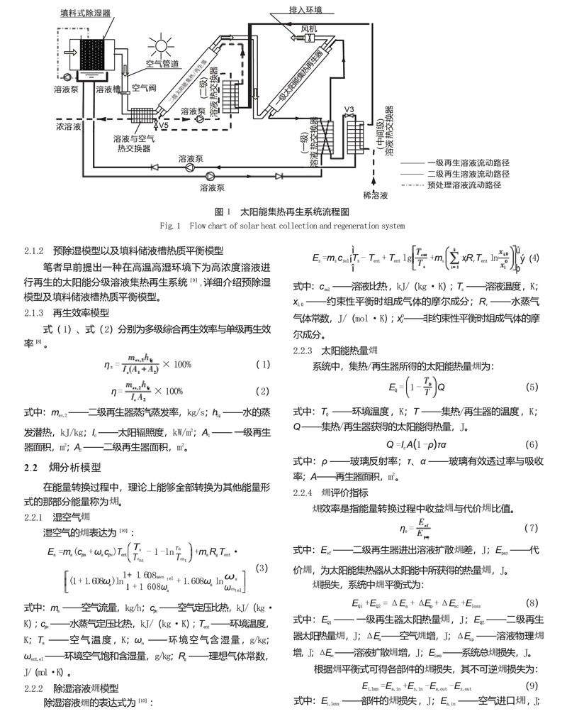 热回收型太阳能分级溶液集热/再生系统能量与分析
