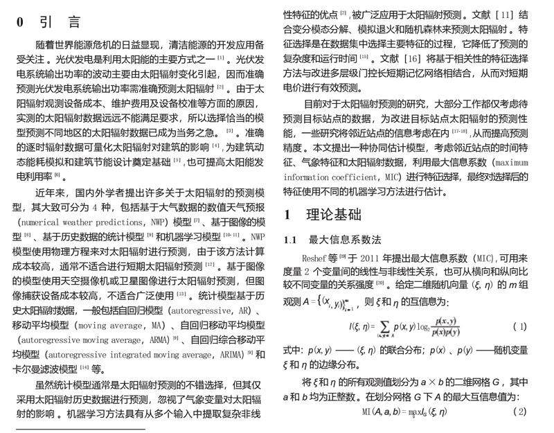 摘 要:提出一种短期太阳辐射估计的协同方法,即利用邻近站点数据来估计目标站点的太阳辐射。先利用最大信息系数对所有站点的相关数据进行特征选择。然后将特征选择后的数据作为输入,采用不同的机器学习模型进行估计。最后在实际数据上将协同估计的误差与仅采用目标站点的估计误差进行比较。实验结果表明协同估计对所有目标站点都有更高的精度和更低的误差。(剩余13977字)