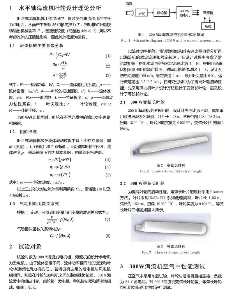 基于相似准则的同功率海流机及风力机叶轮设计与试验