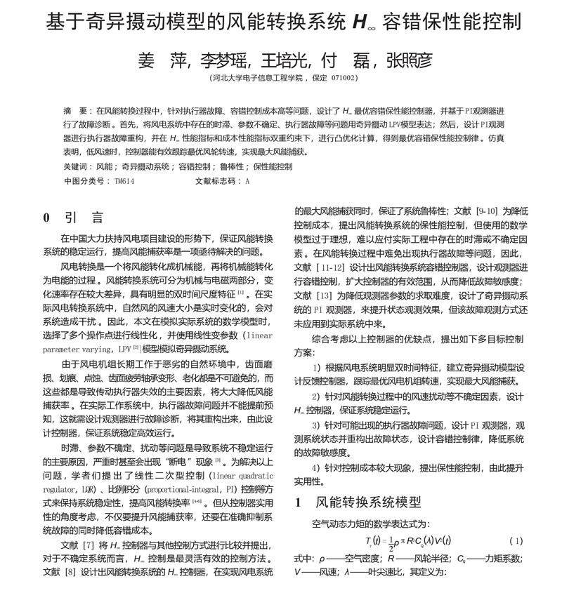基于奇异摄动模型的风能转换系统[H∞]容错保性能控制