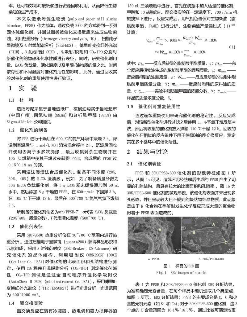 新型纸浆污泥生物炭基催化剂的制备及其催化合成生物柴油研究