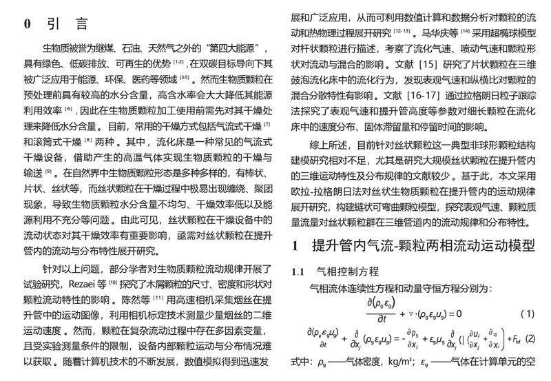丝状生物质颗粒在矩形提升管内的分布特性