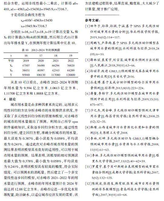 基于多元线性回归模型的赤峰市用水量预测与分析