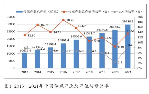 2021年,中国传媒产业规模呈恢复性增长态势,中国传媒产业总产值达29710.3亿元,增长率从上一年的8.40%提升至13.54%。中国传媒产业内外部环境发生深刻变化,国家对互联网与平台经济的治理力度加大,新型主流媒体融合发展再上新台阶,传媒数字经济在媒介视野不断地扩大下继续保持高速发展。在元宇宙这一虚拟数字生态中,媒体积极布局新赛道,传媒生态系统将迎来新一轮的变革。(剩余11860字)