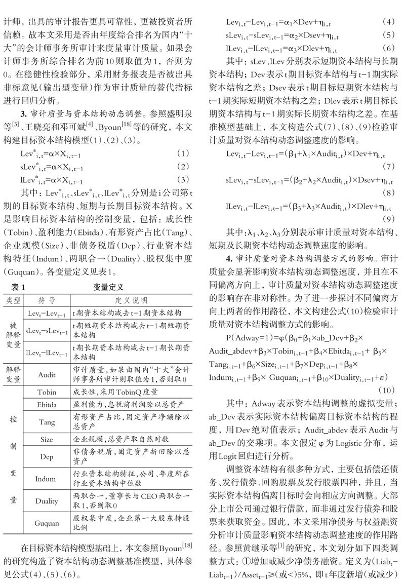 【摘要】审计质量是影响资本结构动态调整速度的关键因素之一。 以2010 ~ 2019年沪深A股上市公司数据为研究样本, 分析审计质量对资本结构动态调整速度的影响。 研究表明: 高质量审计能够加快资本结构动态调整速度; 相比向下偏离目标资本结构, 高质量审计更可能加快向上偏离目标资本结构的动态调整速度; 高质量审计更可能降低企业相关利益方的信息不对称水平, 从而加快资本结构动态调整速度; 在不同产权性质、市场化程度、供给侧结构性改革情况下, 审计质量对资本结构动态调整的影响有较大差异。(剩余15413字)