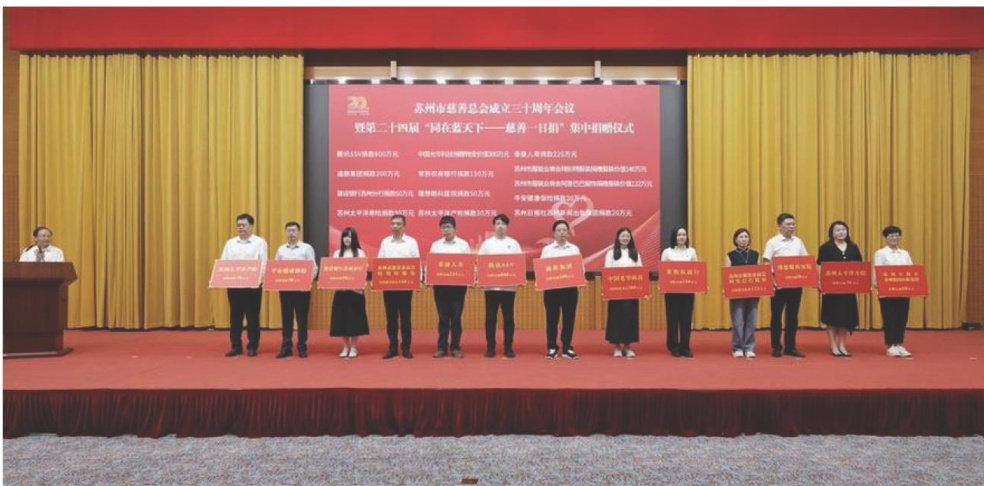 9月5日是第十个“中华慈善日”,苏州举行市慈善总会成立三十周年会议暨第二十四届“同在蓝天下一一慈善一日捐”集中捐赠仪式。江苏省委副书记、苏州市委书记刘小涛、市人大常委会主任李亚平、市政协主席朱民、市委副书记黄爱军等市领导带头捐款。