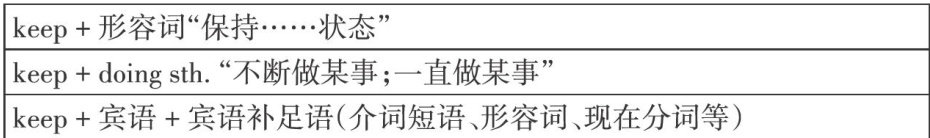 Youshouldkeepcalminan emergency.在紧急情况下你应该保持冷静。 Keepquiet,please.Thebabyissleeping.请保持安静,宝宝在睡觉。 (2)keep + doing sth.“不断做某事;一直做某事”