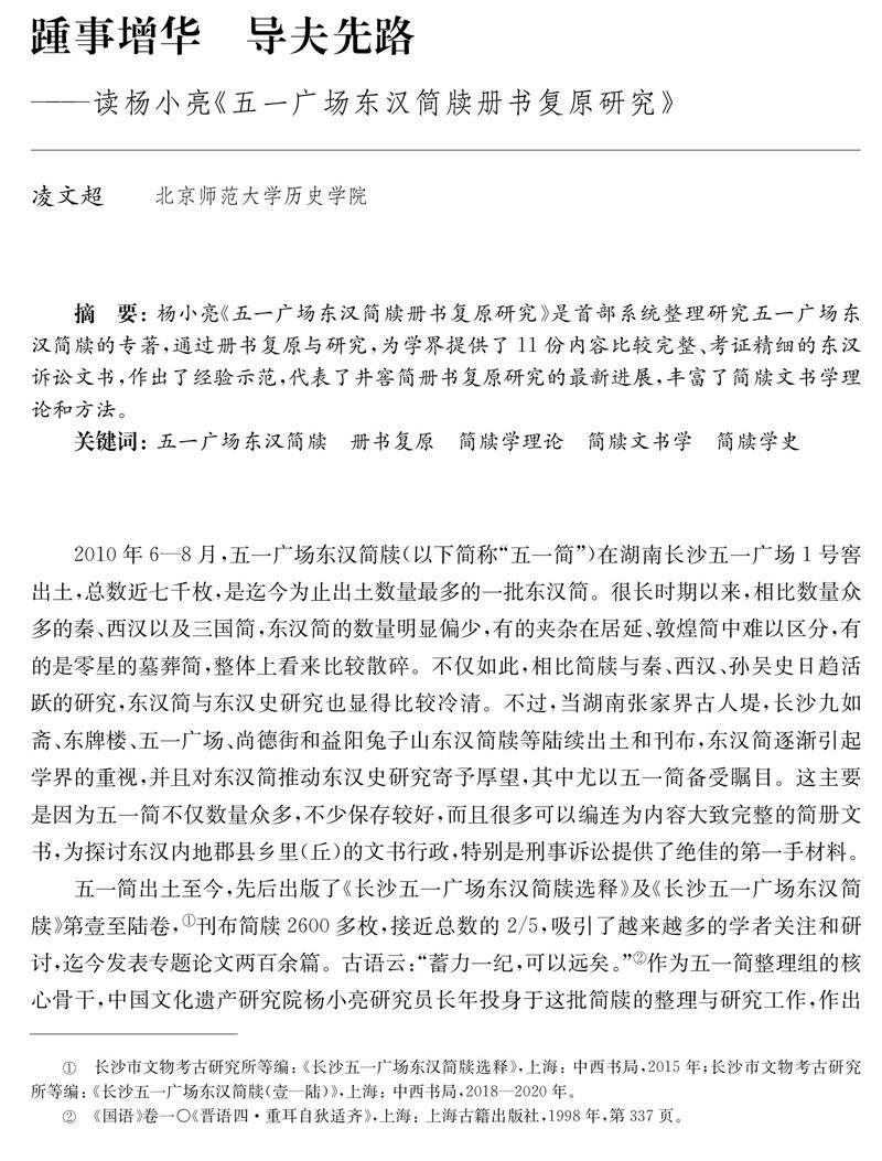 关键词: 五一广场东汉简牍 册书复原 简牍学理论 简牍文书学 简牍学史