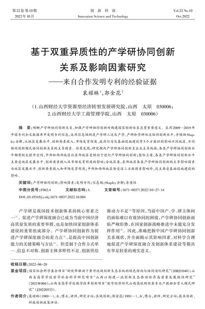 基于双重异质性的产学研协同创新关系及影响因素研究