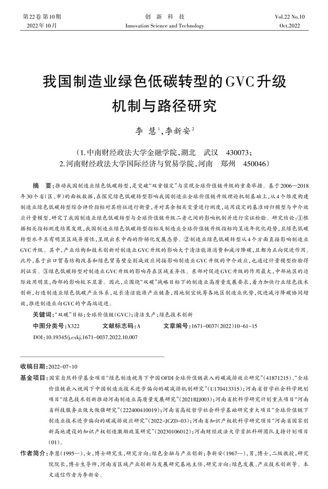 我国制造业绿色低碳转型的GVC升级机制与路径研究