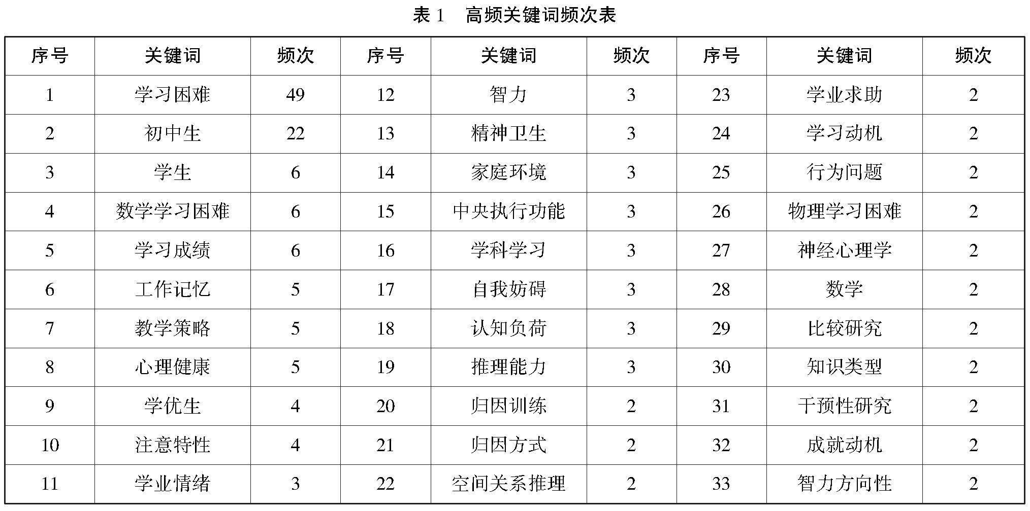 我国初中生学习困难研究的现状和热点