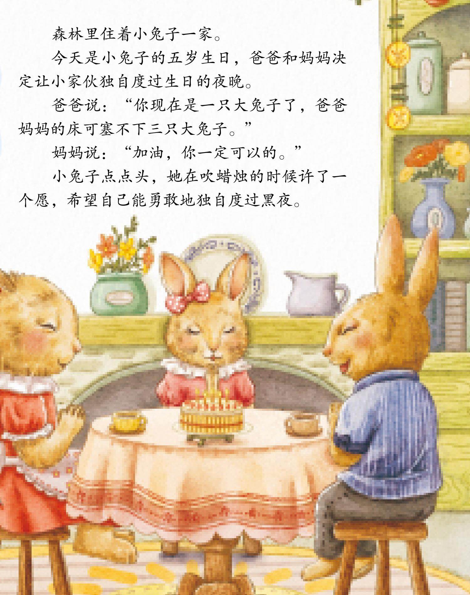 小兔子点点头,她在吹蜡烛的时候许了一个愿,希望自己能勇敢地独自度过黑夜。
