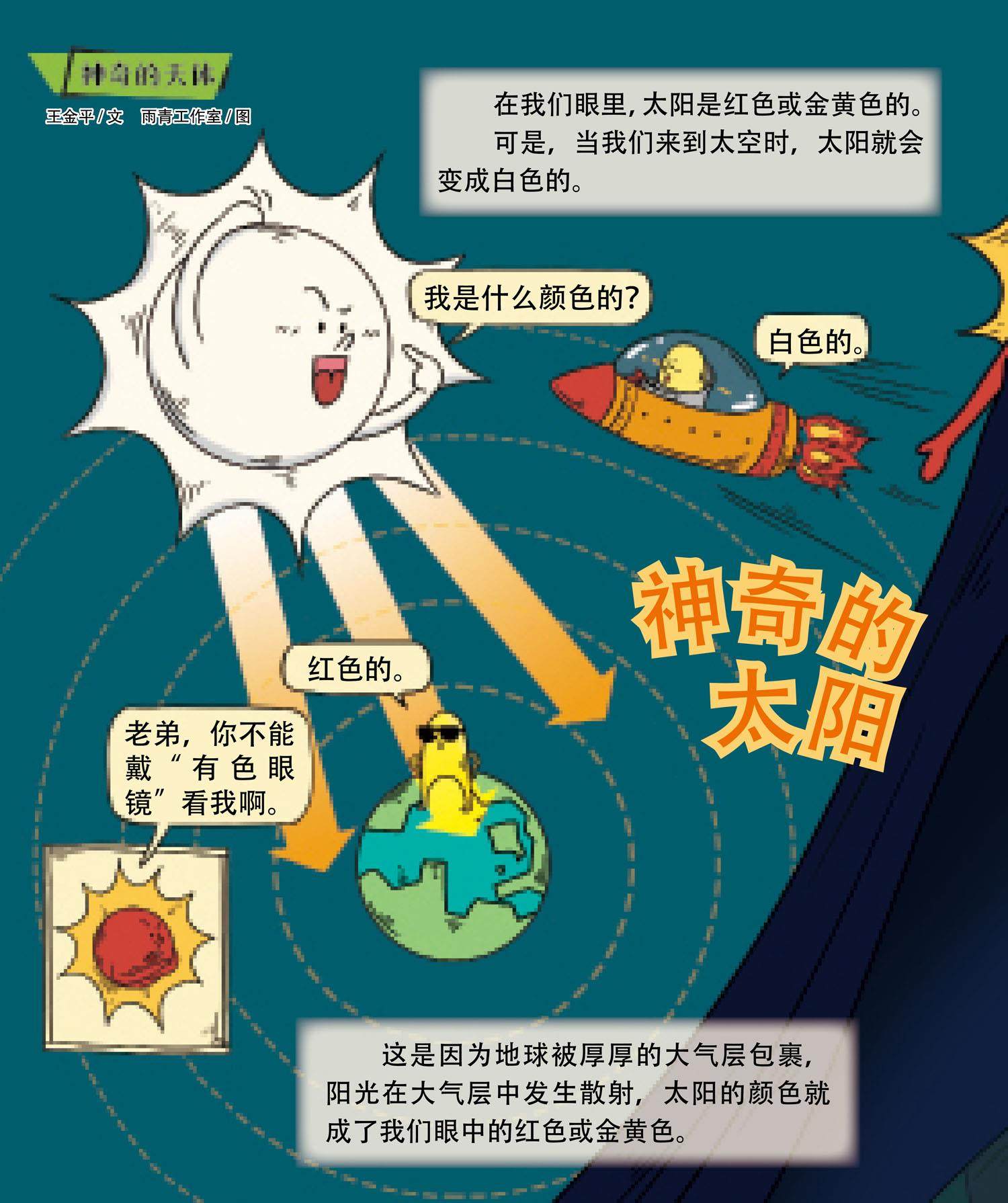 可是,当我们来到太空时,太阳就会变成白色的。