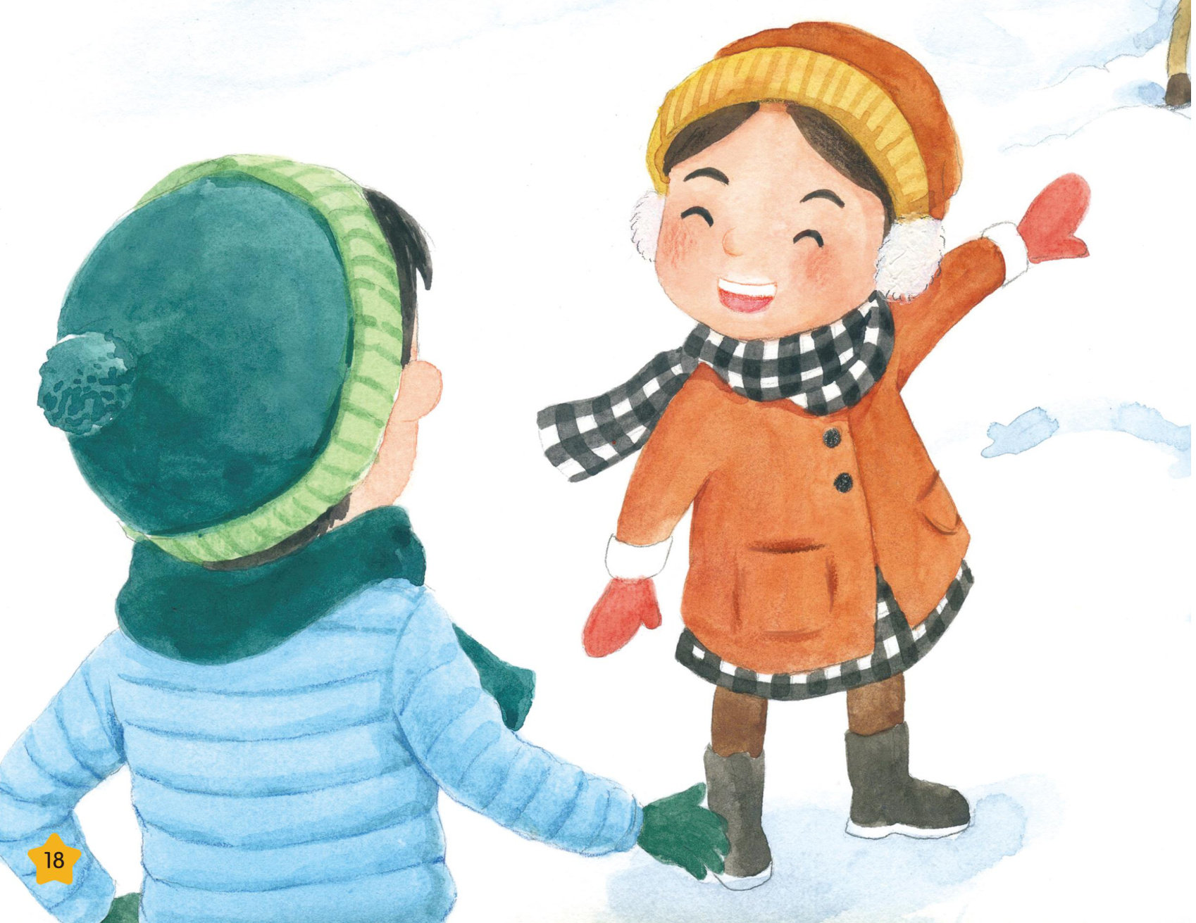 笑花花跟着哥哥笑巴巴去玩雪。