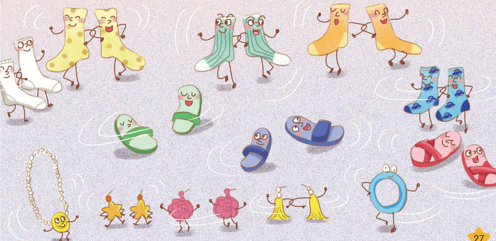 衣柜里的袜子们会最先出发,手拉着手蹦蹦跳跳地前往舞池
