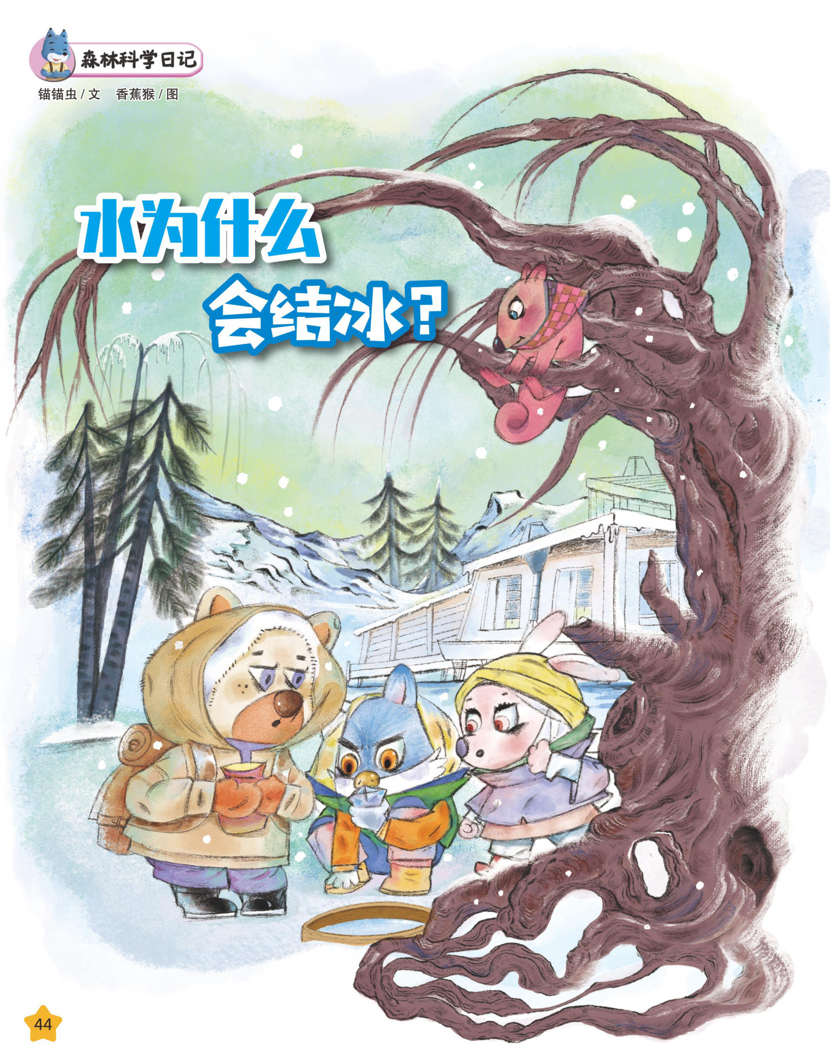 猫头鹰博士给了伙伴们两个杯子和一壶水,让他们做“水变冰”的实验。(剩余5字)