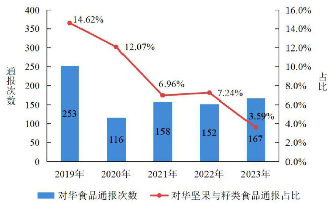 2019一2023年欧盟对华坚果与籽类食品预警通报分析