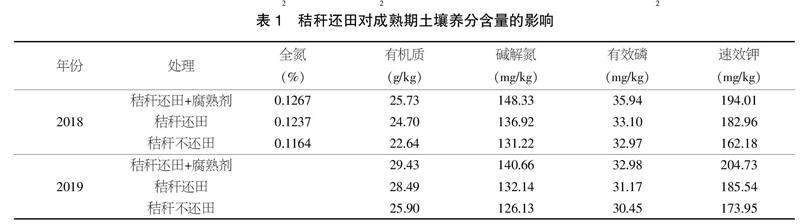 秸秆还田对滨海稻区土壤理化性质及粳稻产量品质的影响