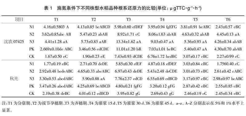 施氮对不同株型水稻品种根系还原力及产量的影响