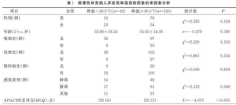 ICU脓毒性休克并发低体温病人临床特征及危险因素分析