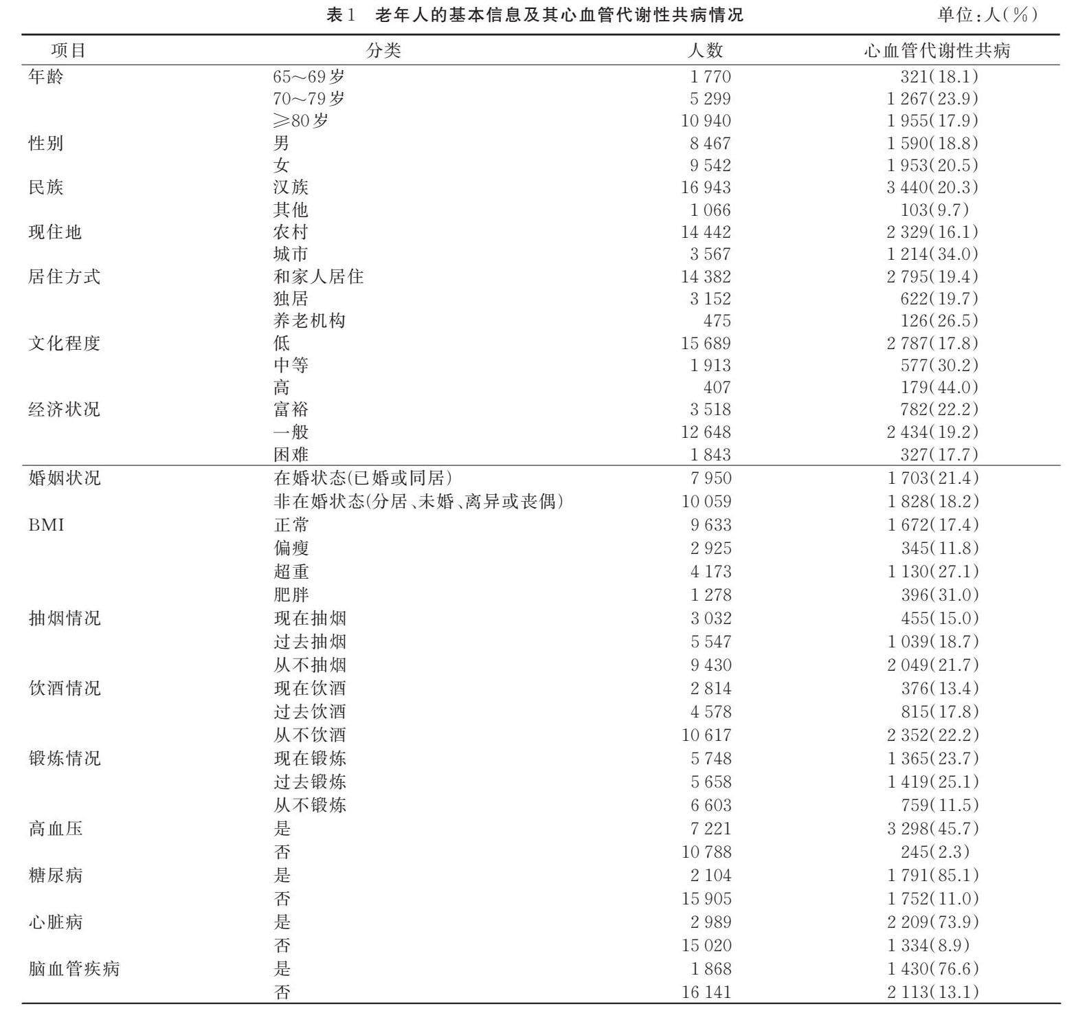 Abstract Objective:To explore between cardiometabolic multimorbidity and cognitive function in Chinese elderly.Methods:18 009 elderly aged 65 and above with follow⁃up records at 2014 and 2018 in Chinese Longitudinal Healthy Longevity Survey(CLHLS) were included as subjects,their basic information were investigated,and the relationship between the cardiovascular metabolic disease(including hypertension,diabetes,heart disease and cerebrovascular disease) number,combination and cognitive function of elderly were analyzed by generalized linear model.Results:The prevalence of cardiometabolic multimorbidity in the elderly was 19.67%.After controlling for confounding factors such as age and gender,Elderly with cardiometabolic multimorbidity had higher risk of cognitive impairment compared to those without cardiovascular metabolic disease[OR=1.18,95%CI(1.08,1.29)].and had a higher Mini⁃Mental state Examination score[β=1.52,95%CI(1.21,1.90)].Elderly with hypertension and diabetes[OR=1.28,95%CI(1.06,1.54)],and with hypertension,heart disease and cerebrovascular disease[OR=1.33,95%CI(1.04,1.70)] had higher risk of cognitive impairment compared to those without cardiovascular metabolic disease.Conclusions:Elderly with cardiometabolic multimorbidity,especially those with comorbidity patterns including hypertension,have higher risk of cognitive impairment.